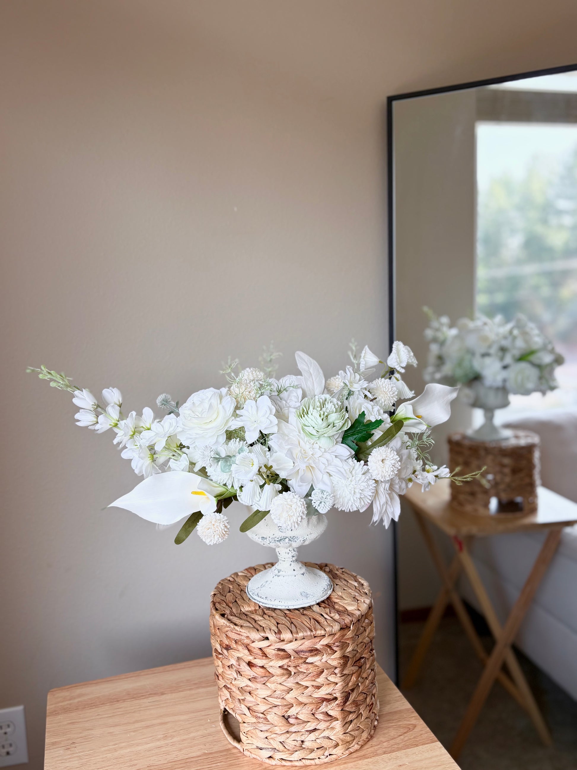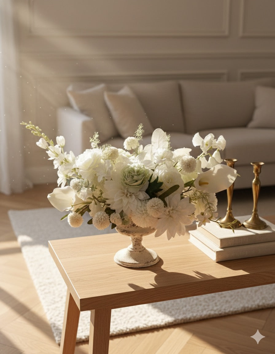 Add a touch of elegance and calm to your space with this beautifully neutral floral centerpiece.